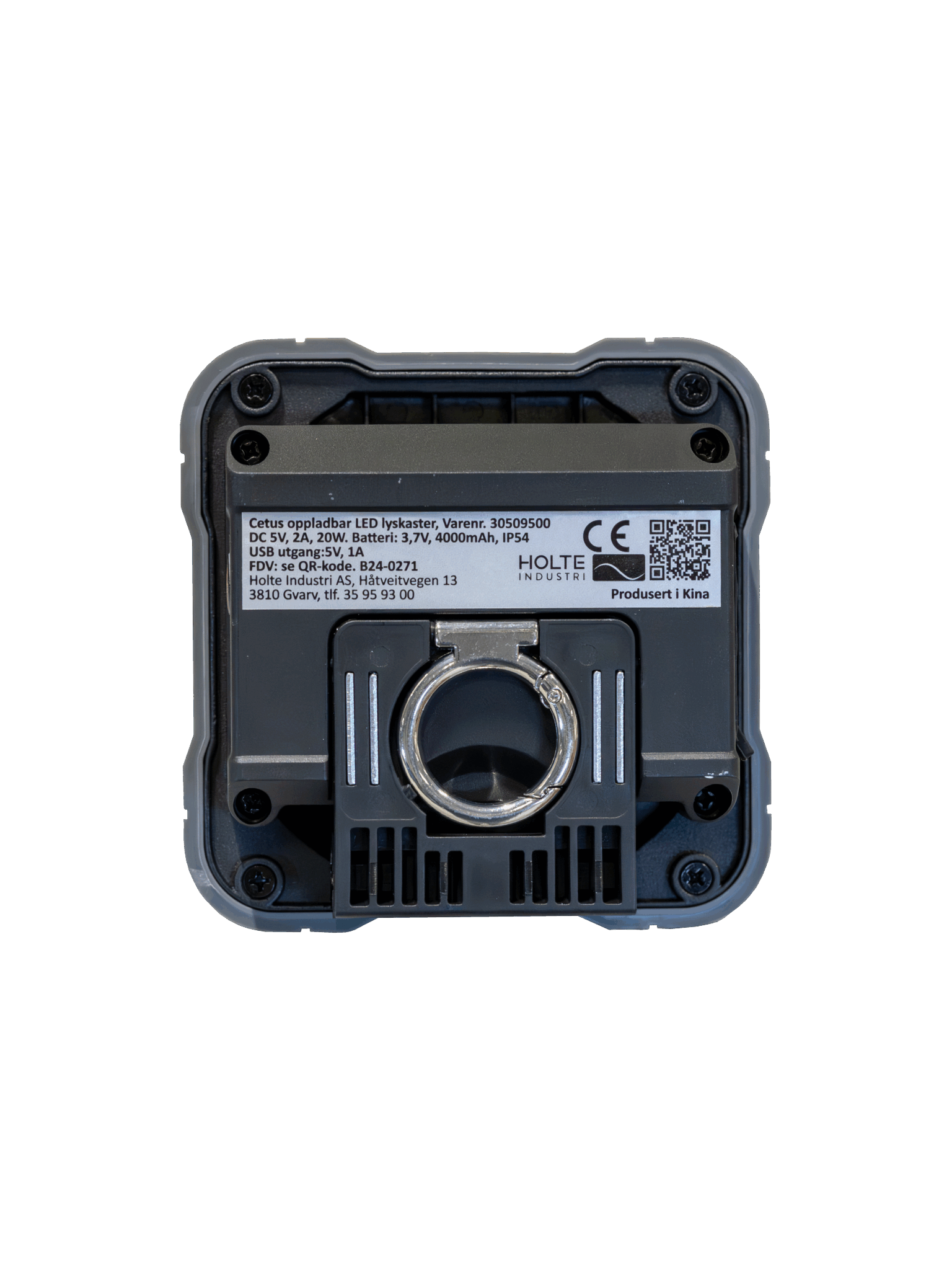 Lampen er oppladbar og har integrert powerbank – perfekt når du trenger å lade mobilen eller annet utstyr mens du jobber.
