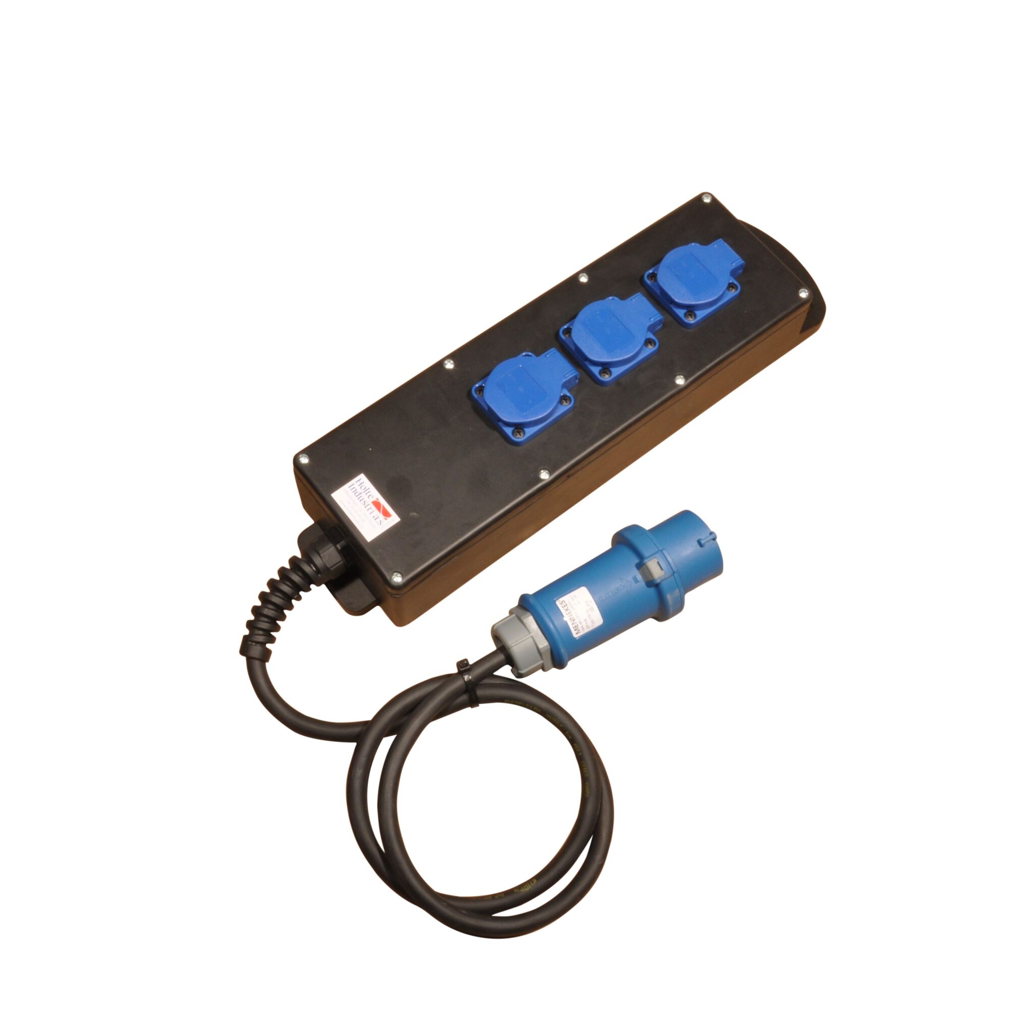 Denne forgreneren gjør det enkelt å fordele strøm fra et 316-9 uttak til tre separate 1-fase uttak. Med en solid 1,5m kabel (4G 2,5) sikrer den stabil og sikker strømtilførsel til utstyr som krever separate tilkoblinger.