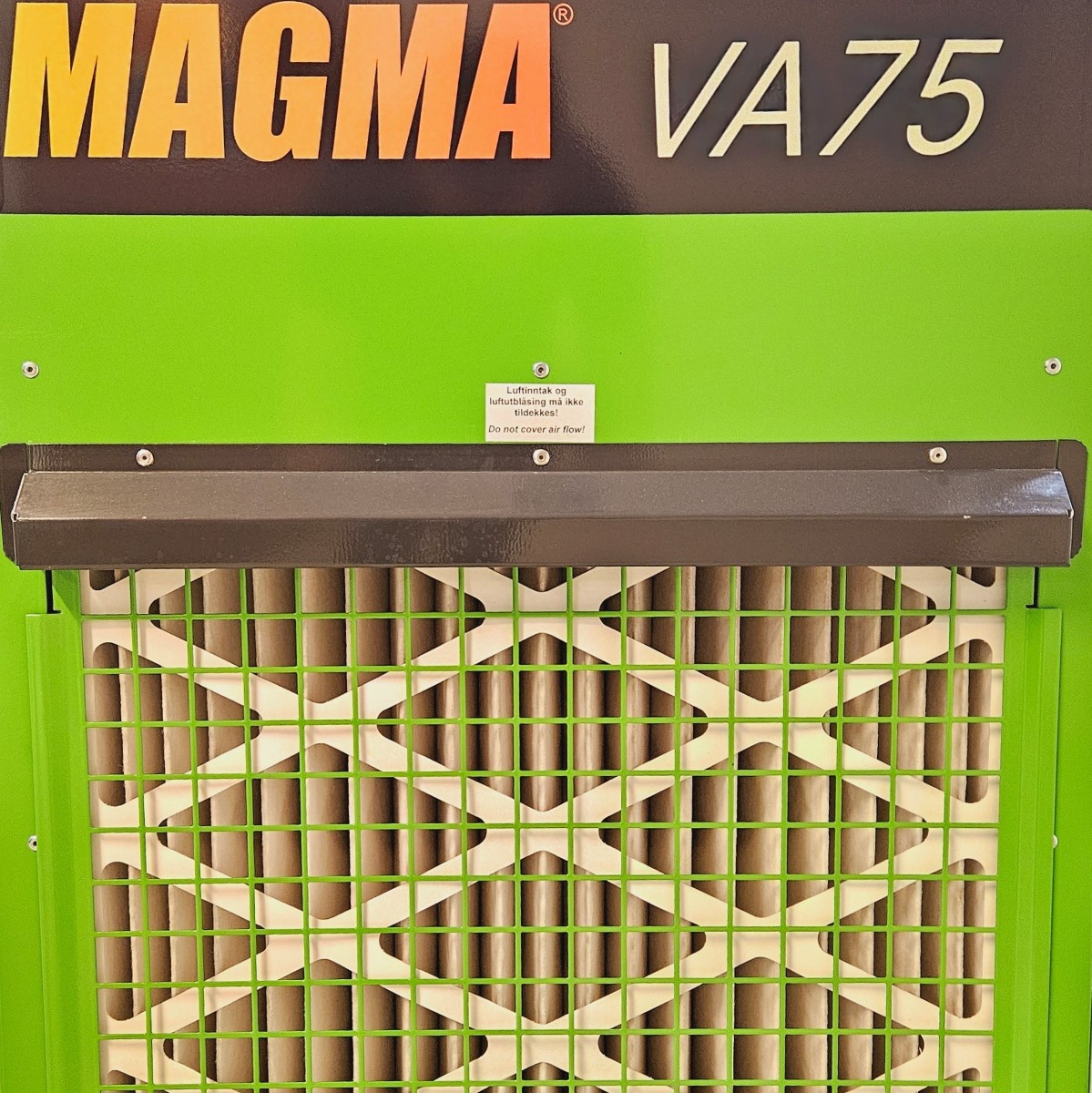 Magma VA75 leveres som standard med en grovfilter G4, og med riktig filter kan den også fungere som en effektiv luftrenser. Dette gir ekstra verdi, spesielt i rom som krever både oppvarming og bedre luftkvalitet.