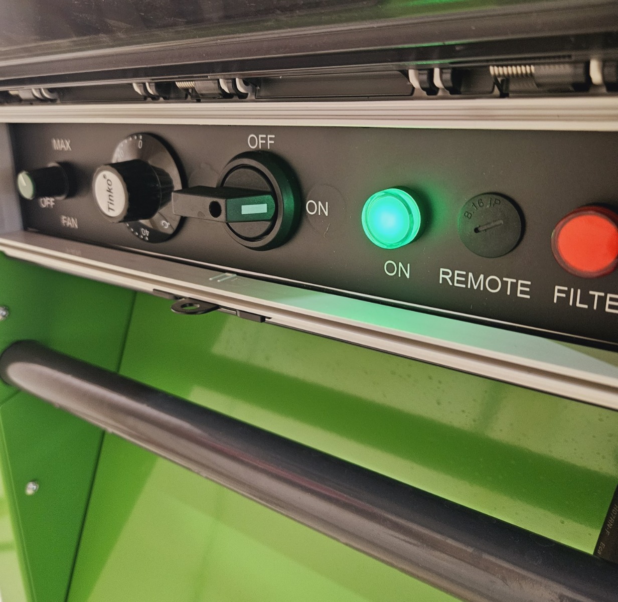 Maskinen kan også utstyres med smarte løsninger for overvåking og fjernstyring, og den leveres som standard med termostat og lokal viftestyring for enkel bruk.
