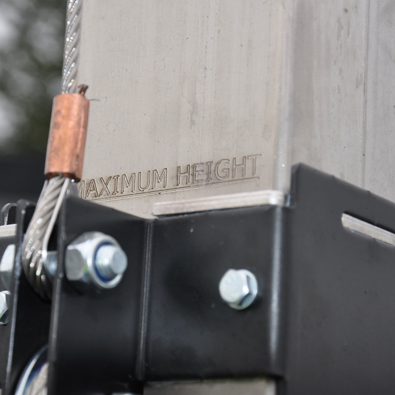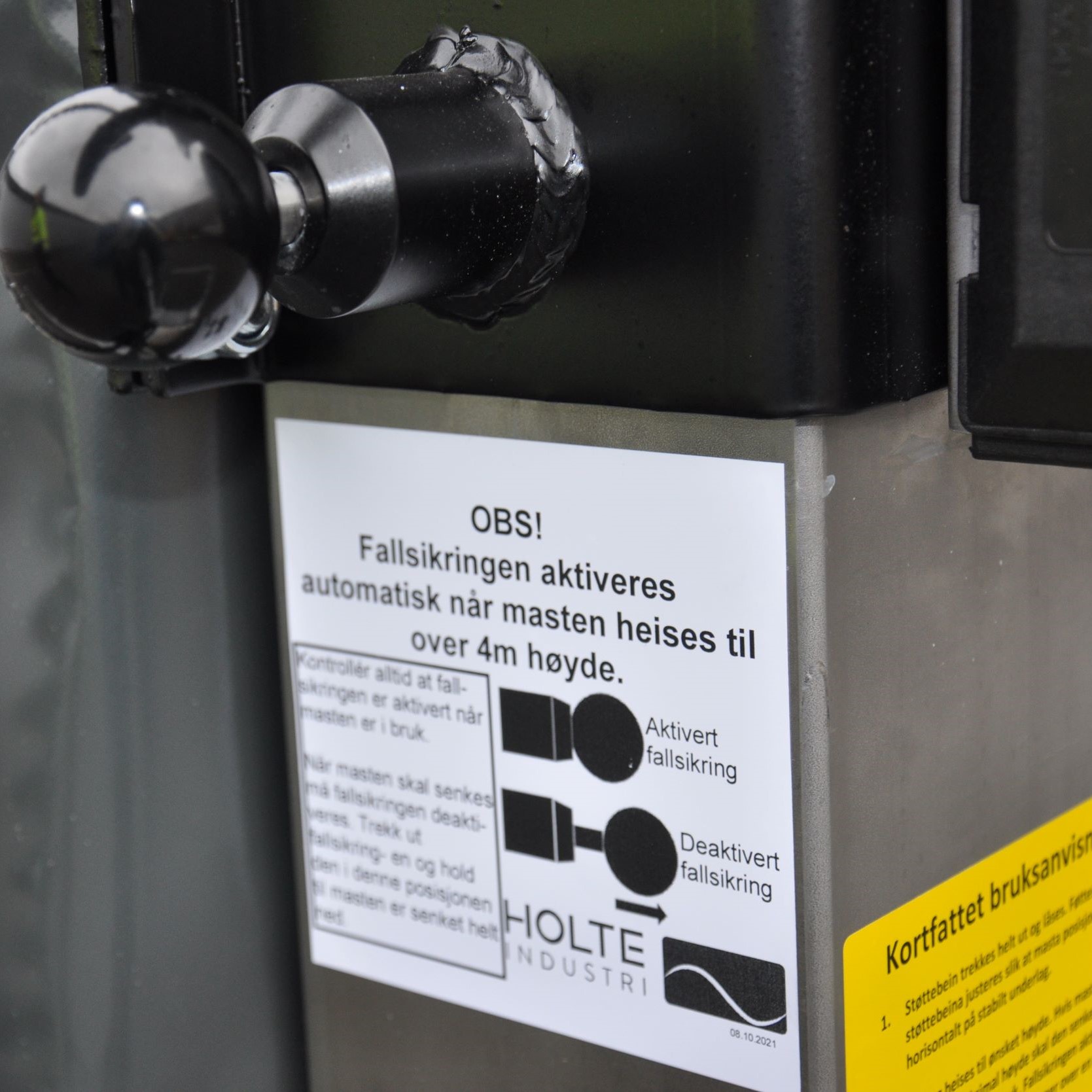 Hvis en wire ryker mens masten er hevet, stopper lysriggen for å unngå skade på personer på bakken.