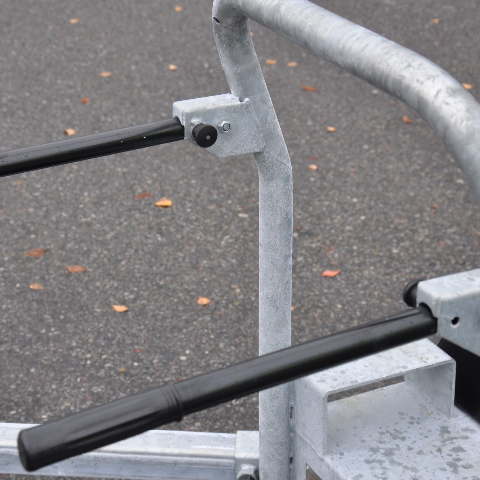 Materialer: Dreibart teleskoprør i rustfritt stål, varmgalvanisert chassis, pulverlakkerte platedetaljer