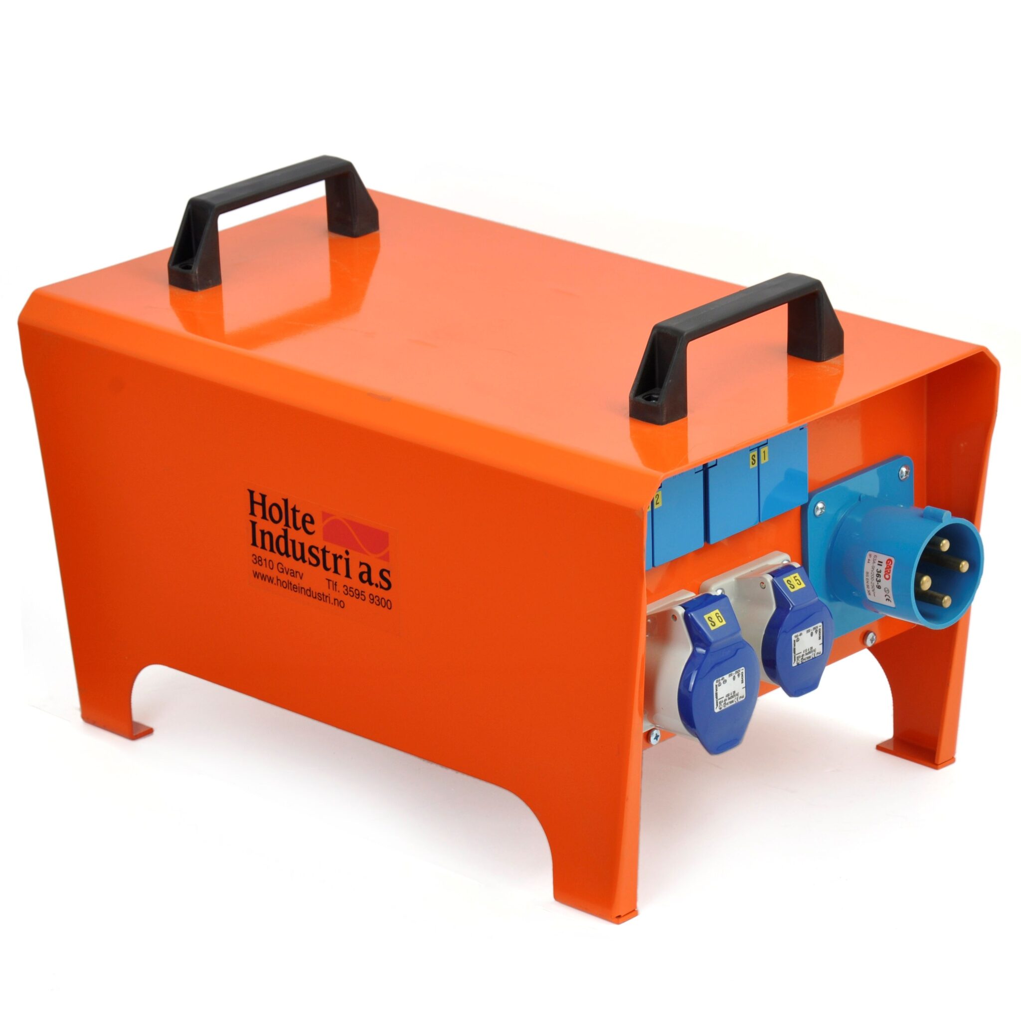 Polyesterpulverlakkeringen på overflaten gir sentralen både styrke og en estetisk, holdbar finish. Bygget i henhold til gjeldende normer for flyttbare byggeplassentraler, NEK EN60439-4 og NEK400, er det et trygt valg for profesjonell bruk.