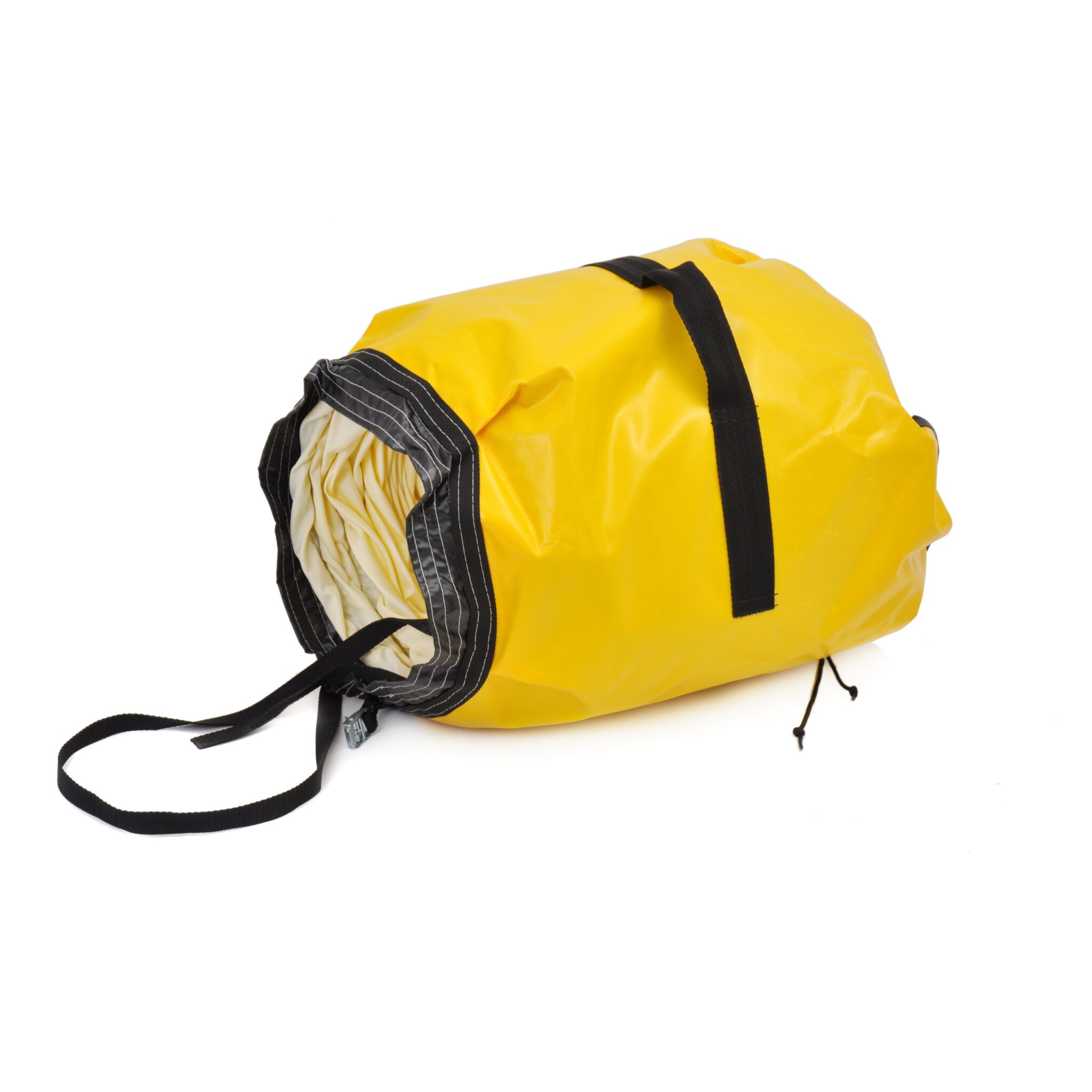 For transport og lagring kan slangen komprimeres og pakkes i den påsydde bagen. Slange har påsydde slitasjebånd utvendig.